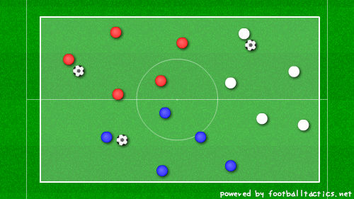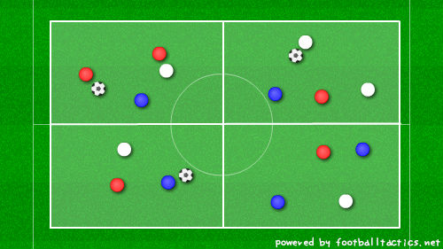 3チームに分かれて、ペナほどの大きさのコートで、入乱れてののパス交換。するとこうなったというのが次の図。
