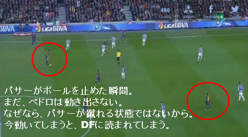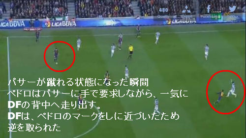 では、画像で動画1:32のシーンを振り返る。ペドロにスーパースルーパスが出たシーン。