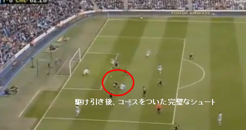 ヤヤ・トゥーレ選手の動きが一瞬止まったと思った瞬間、DF2人を置き去りにしてペナに突入。