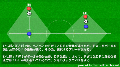 ・グリッドの形をひし形に変えれば、DFとの距離が変わり ” 仕掛け ” を意識することも出来る