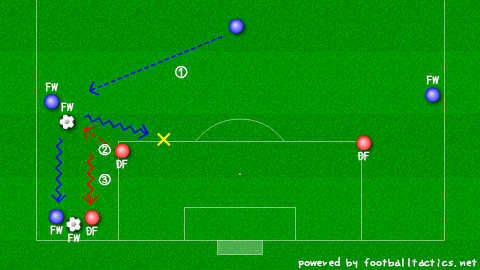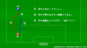 構成は図の通り。×のある内側にドリブルで抜かれないようにする。
