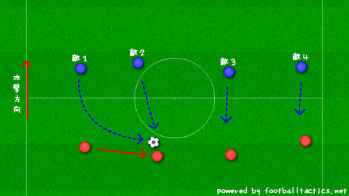 しかし、3枚目の時、すでに内側へパワーを向けてしまったため、相手DFには横向きになってしまい、最終的に奪われてしまう。