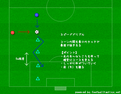 仕組みは簡単で、イメージは、メッシとかCロナみたいに、速いけど、いつでも方向転換やストップできるところにボールを置く感じ。そんな風に出来る感覚を身につけて欲しい。